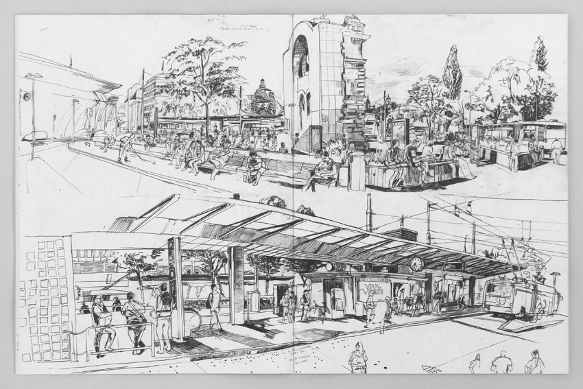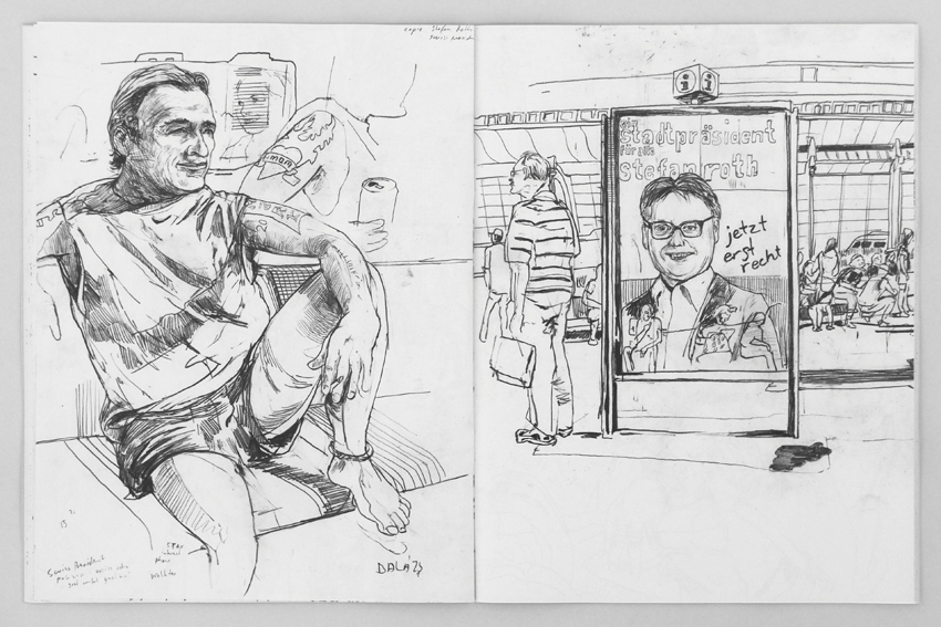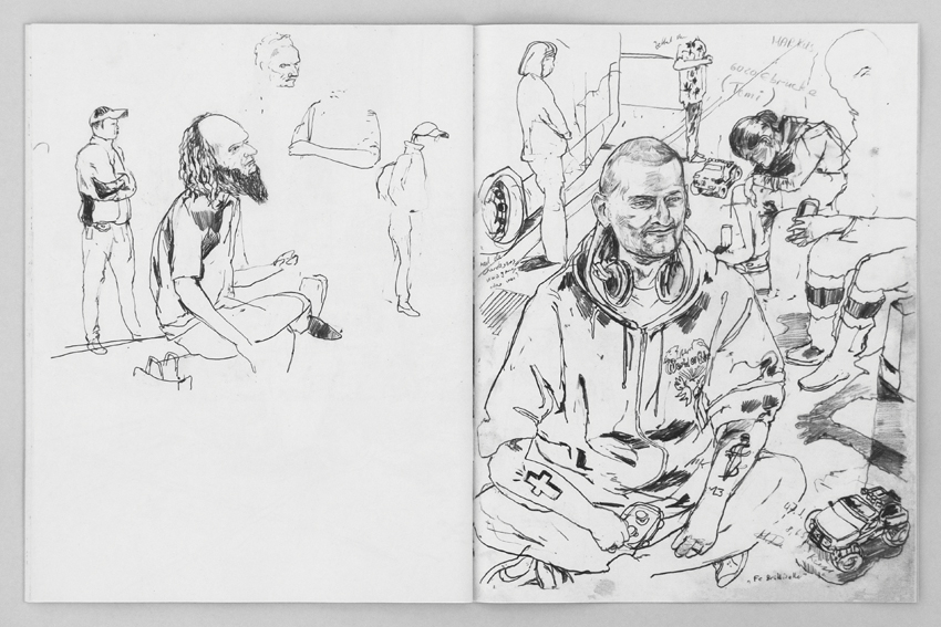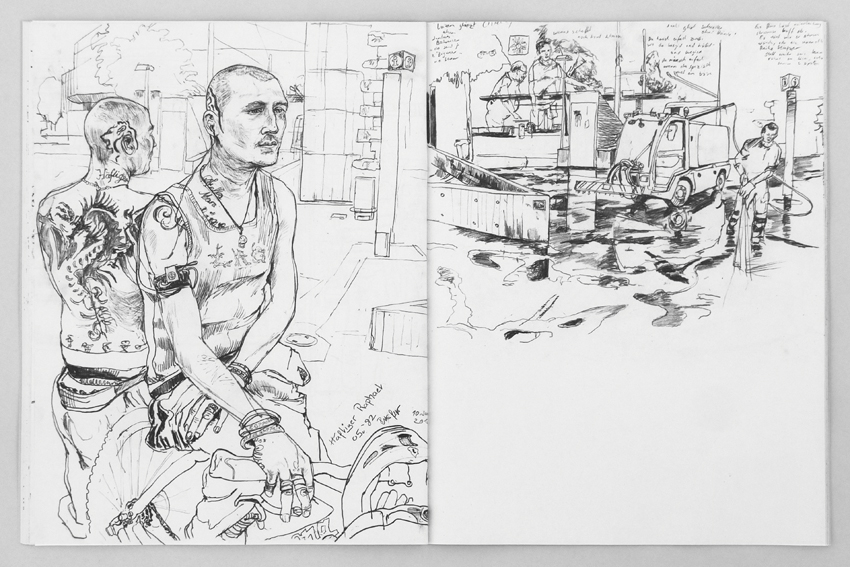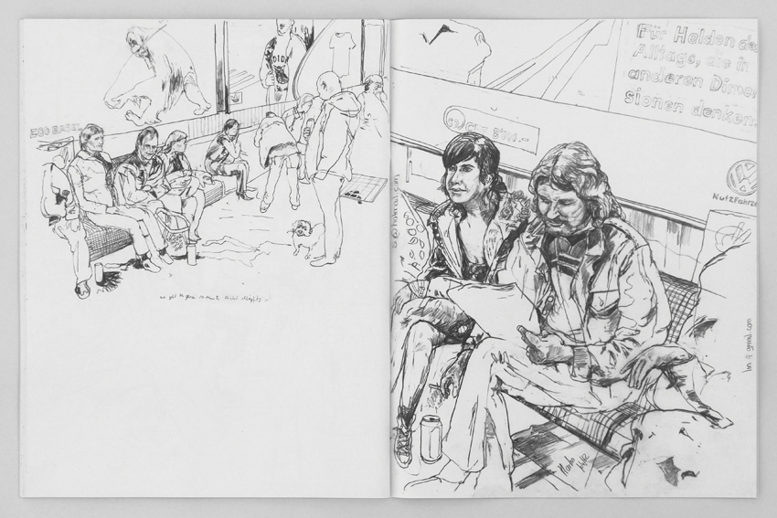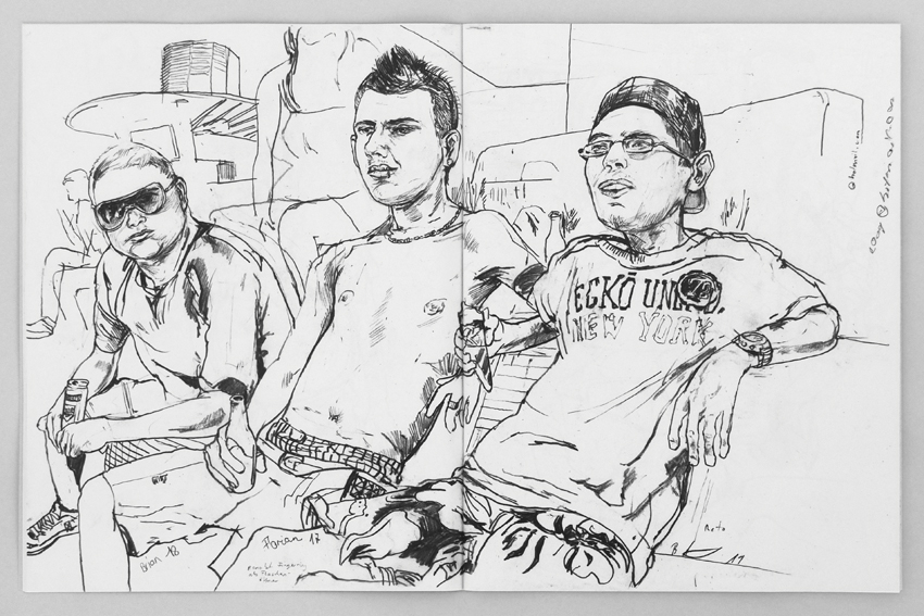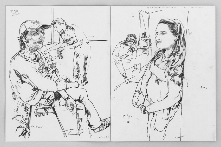 Während eines halben Jahres zeichnete ich fünfundzwanzig Mal vor Ort Jugendliche, Punks, Alkoholiker, Drogenabhängige und