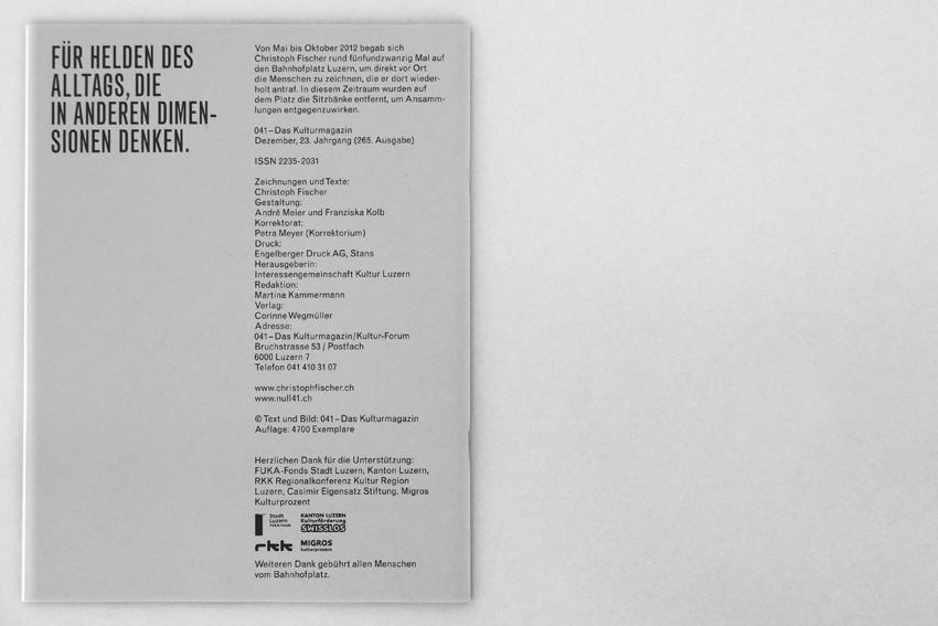 andere. Entstanden ist daraus das Heft «Auf der langen Bank» als Sonderheft fürs «041-Das Kulturmagazin».