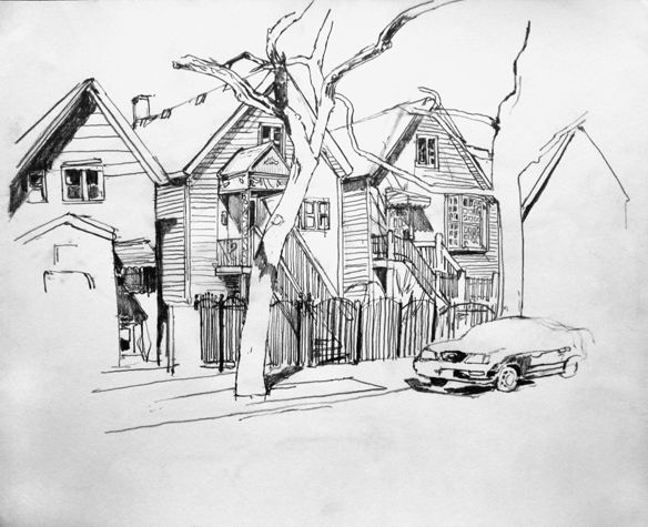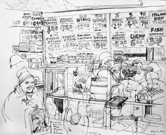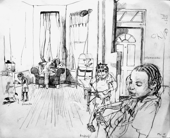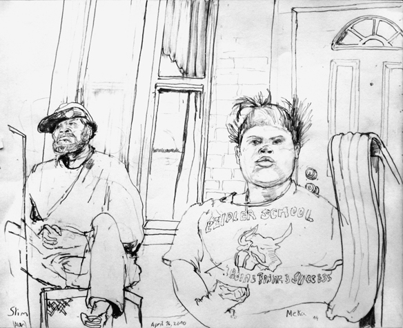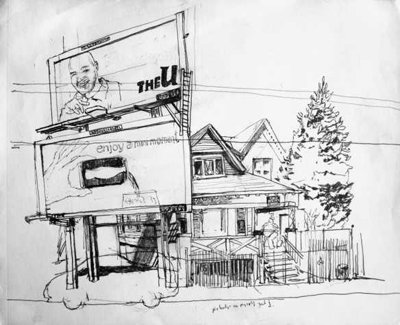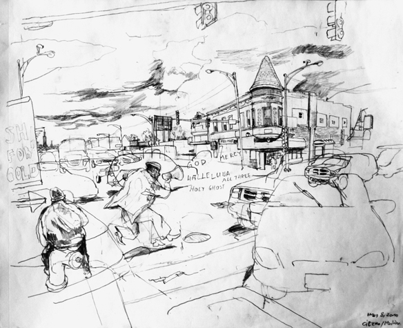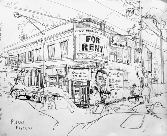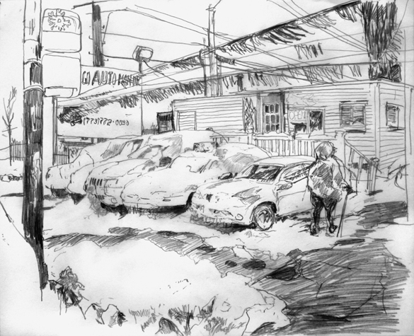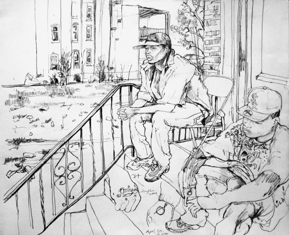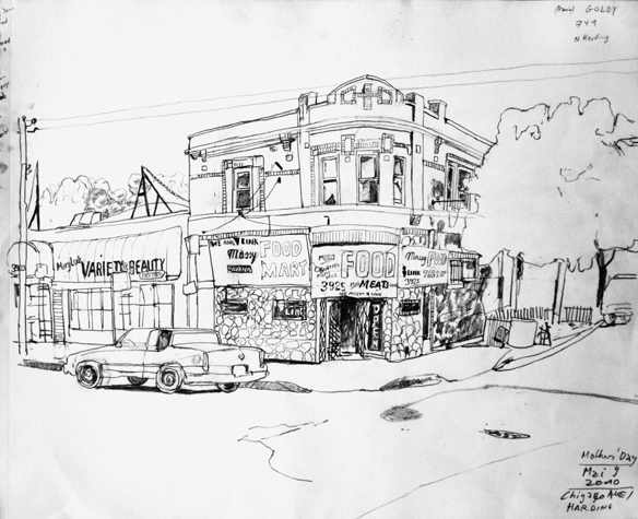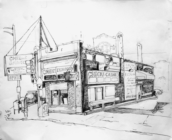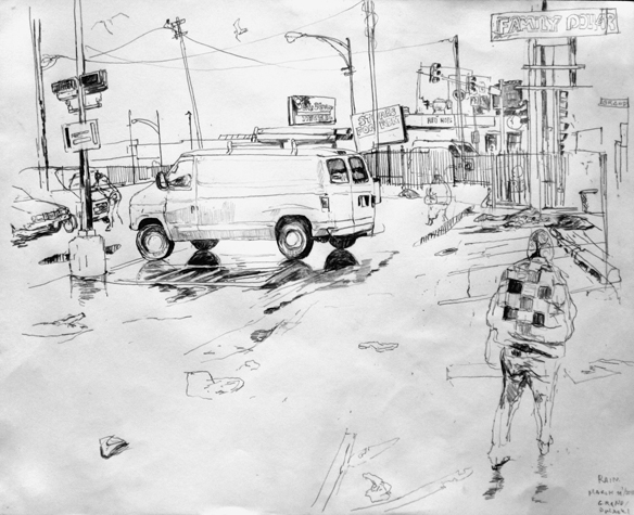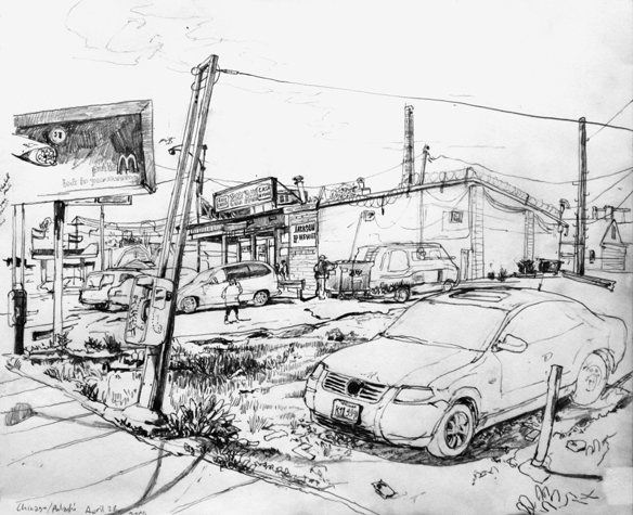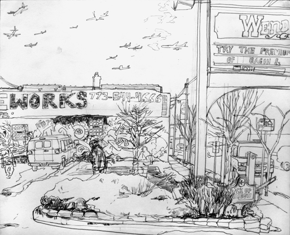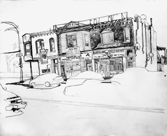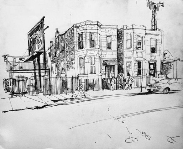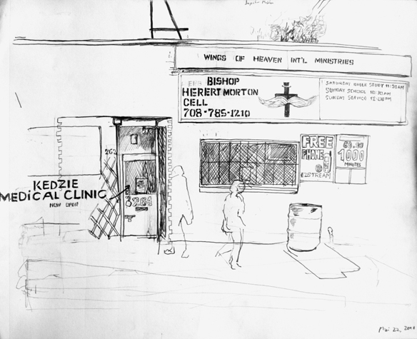 Mit Bleistift und Papier erkundete ich die rauhe "Westside" von Chicago. Dieser Stadtteil ist fast ausschliesslich von Afromerikanern bewohnt. Es ist einer der Stadteile in Chicago, der am meisten durch Probleme wie Armut, Drogen und Gewaltverbrechen geprägt ist. Entstanden während 4-monatigem Atelierstipendium in Chicago.