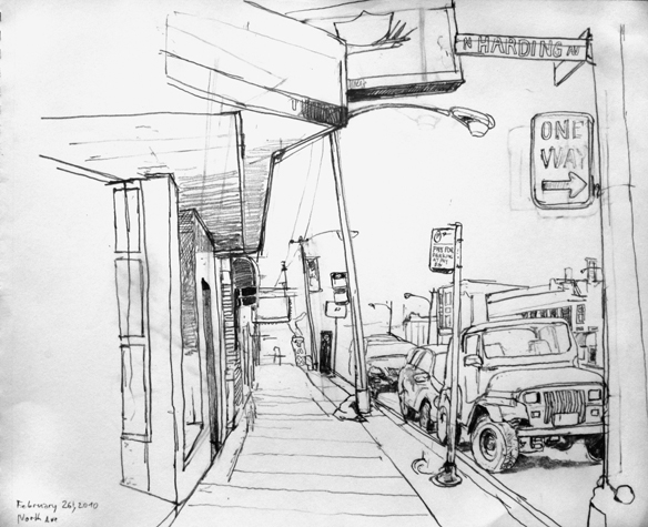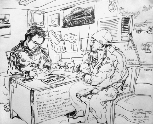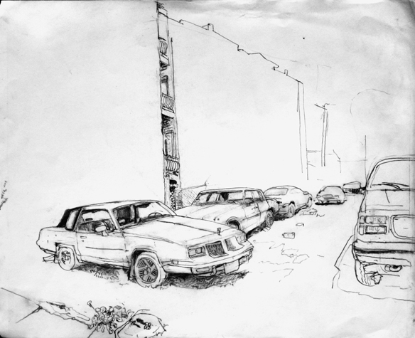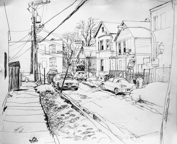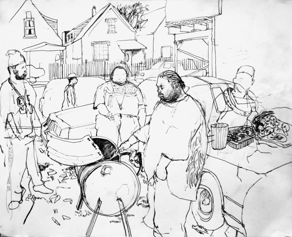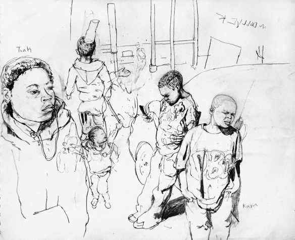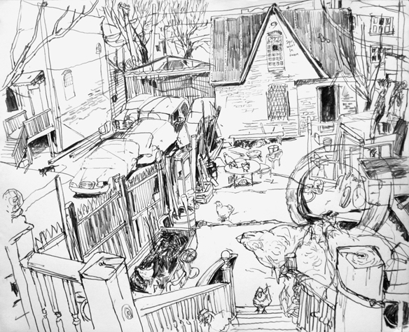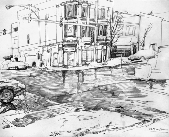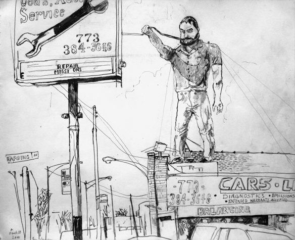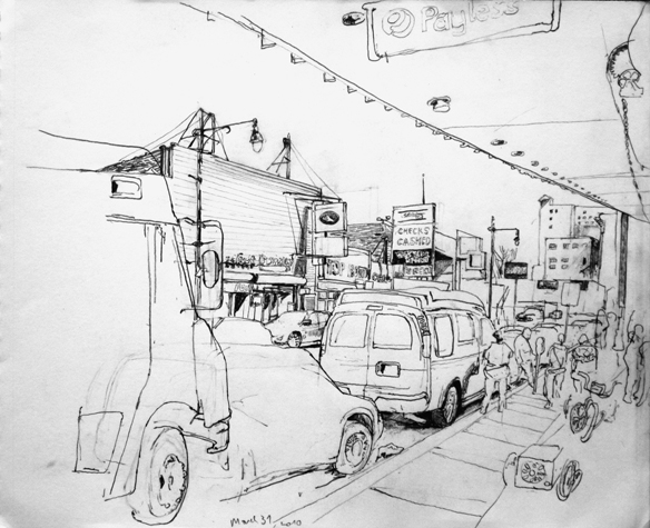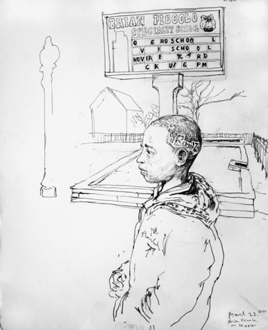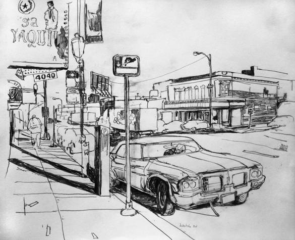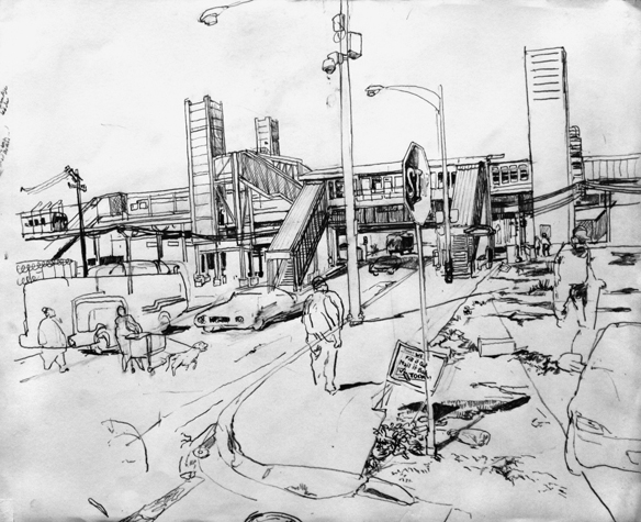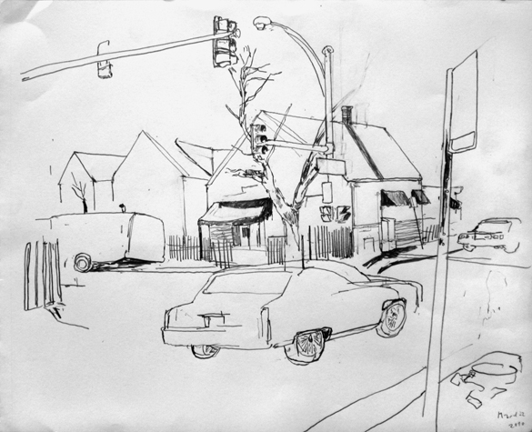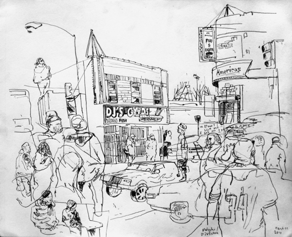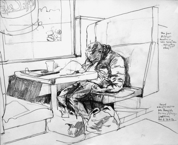 Mit Bleistift und Papier erkundete ich die rauhe "Westside" von Chicago. Dieser Stadtteil ist fast ausschliesslich von Afromerikanern bewohnt. Es ist einer der Stadteile in Chicago, der am meisten durch Probleme wie Armut, Drogen und Gewaltverbrechen geprägt ist. Entstanden während 4-monatigem Atelierstipendium in Chicago.