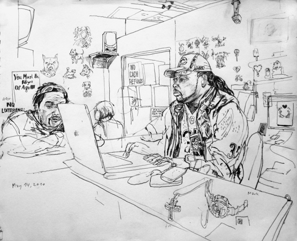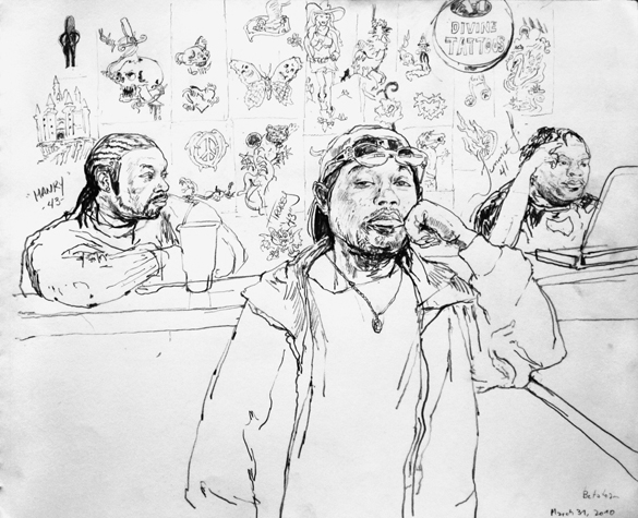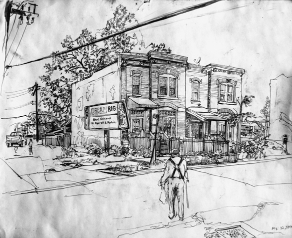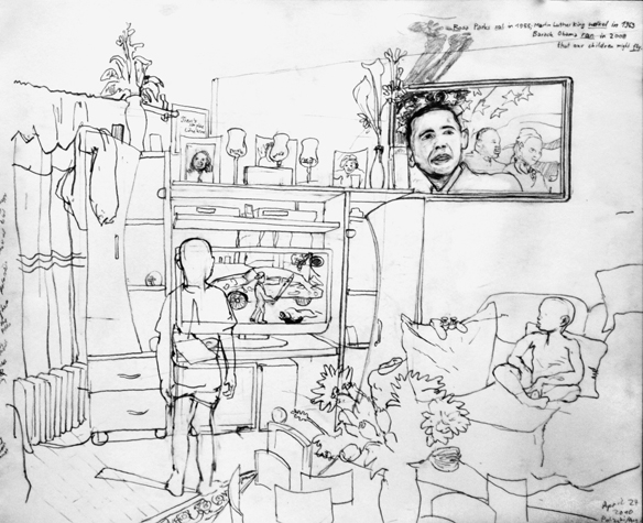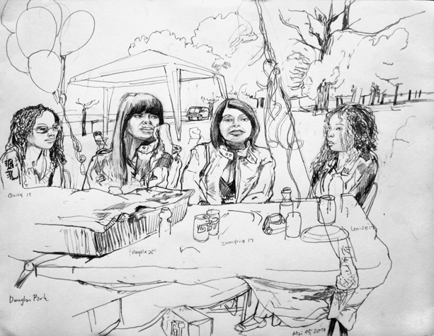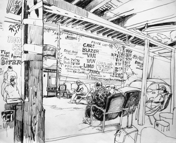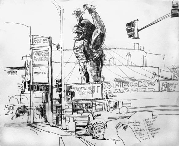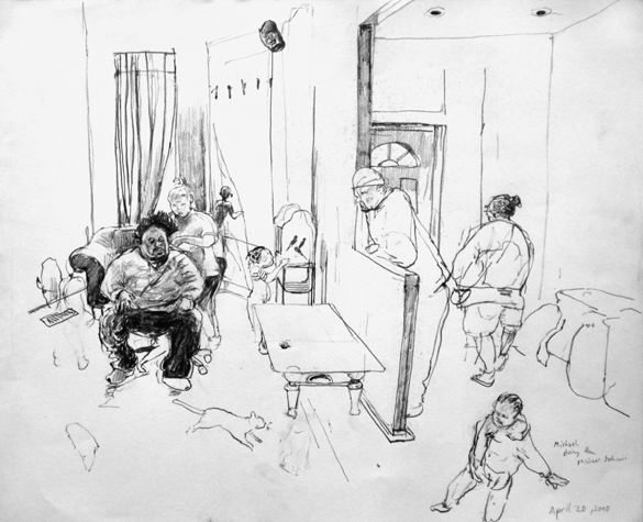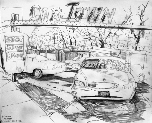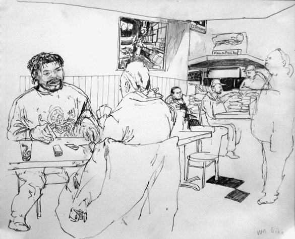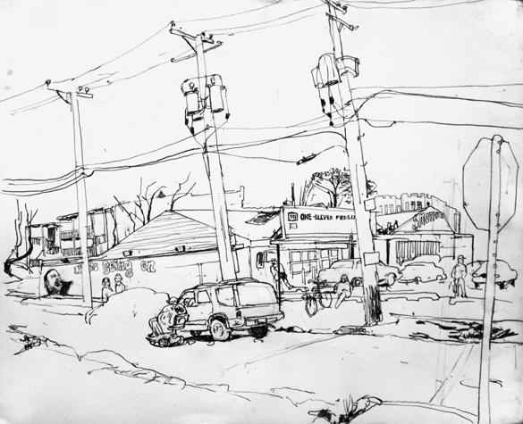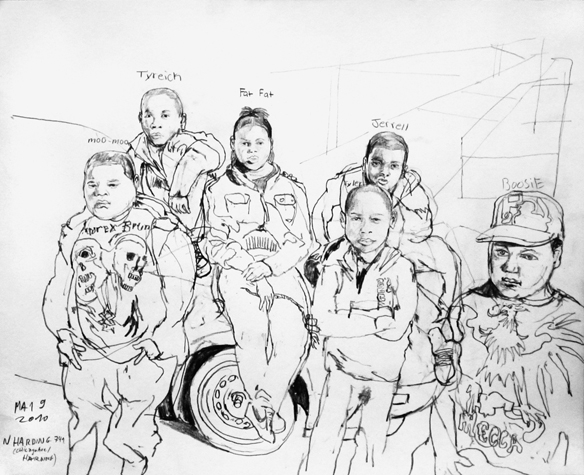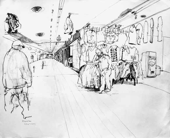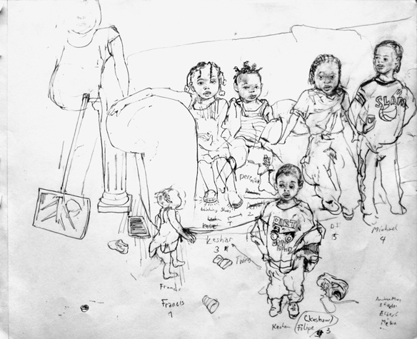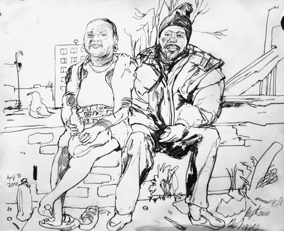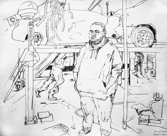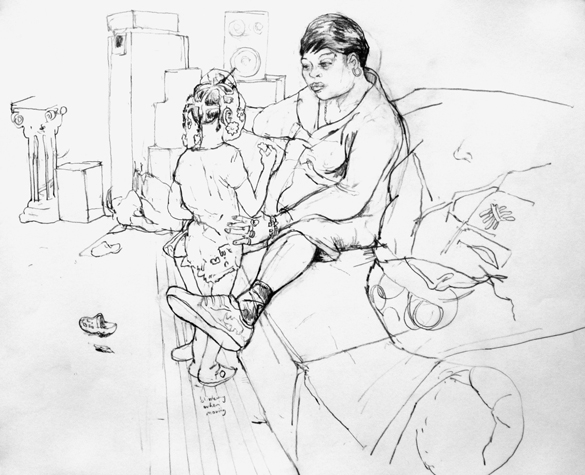 Mit Bleistift und Papier erkundete ich die rauhe "Westside" von Chicago. Dieser Stadtteil ist fast ausschliesslich von Afromerikanern bewohnt. Es ist einer der Stadteile in Chicago, der am meisten durch Probleme wie Armut, Drogen und Gewaltverbrechen geprägt ist. Entstanden während 4-monatigem Atelierstipendium in Chicago.